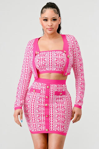 ATHINA PRINTED BARBIE PINK THREE PIECE SET