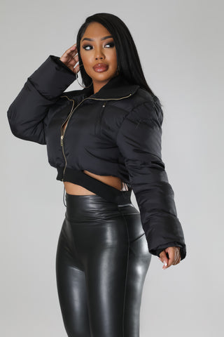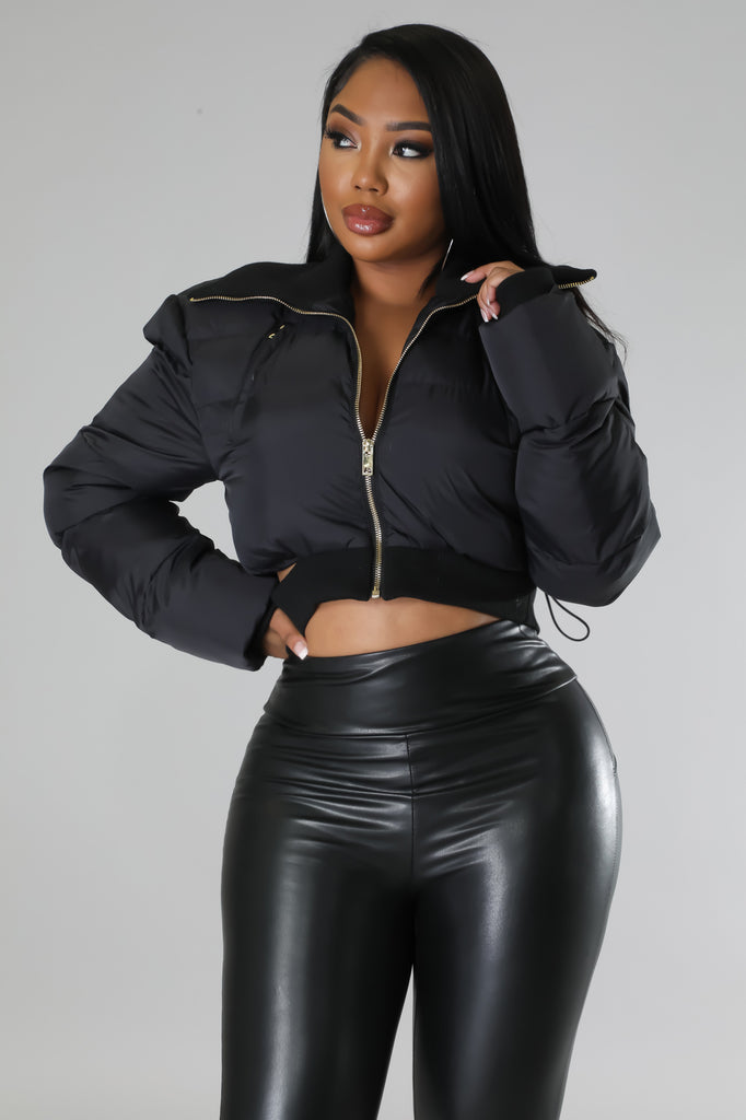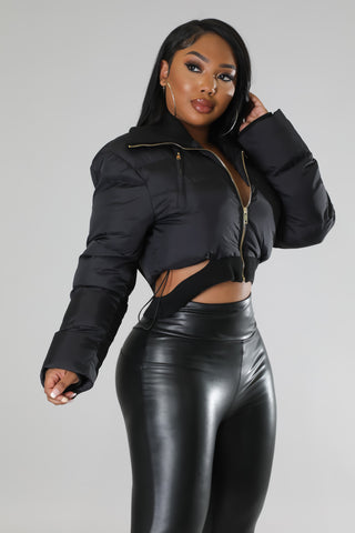 - Cropped jacket (Collar, Long sleeves, Double waist, Drawstring, Zip per closure